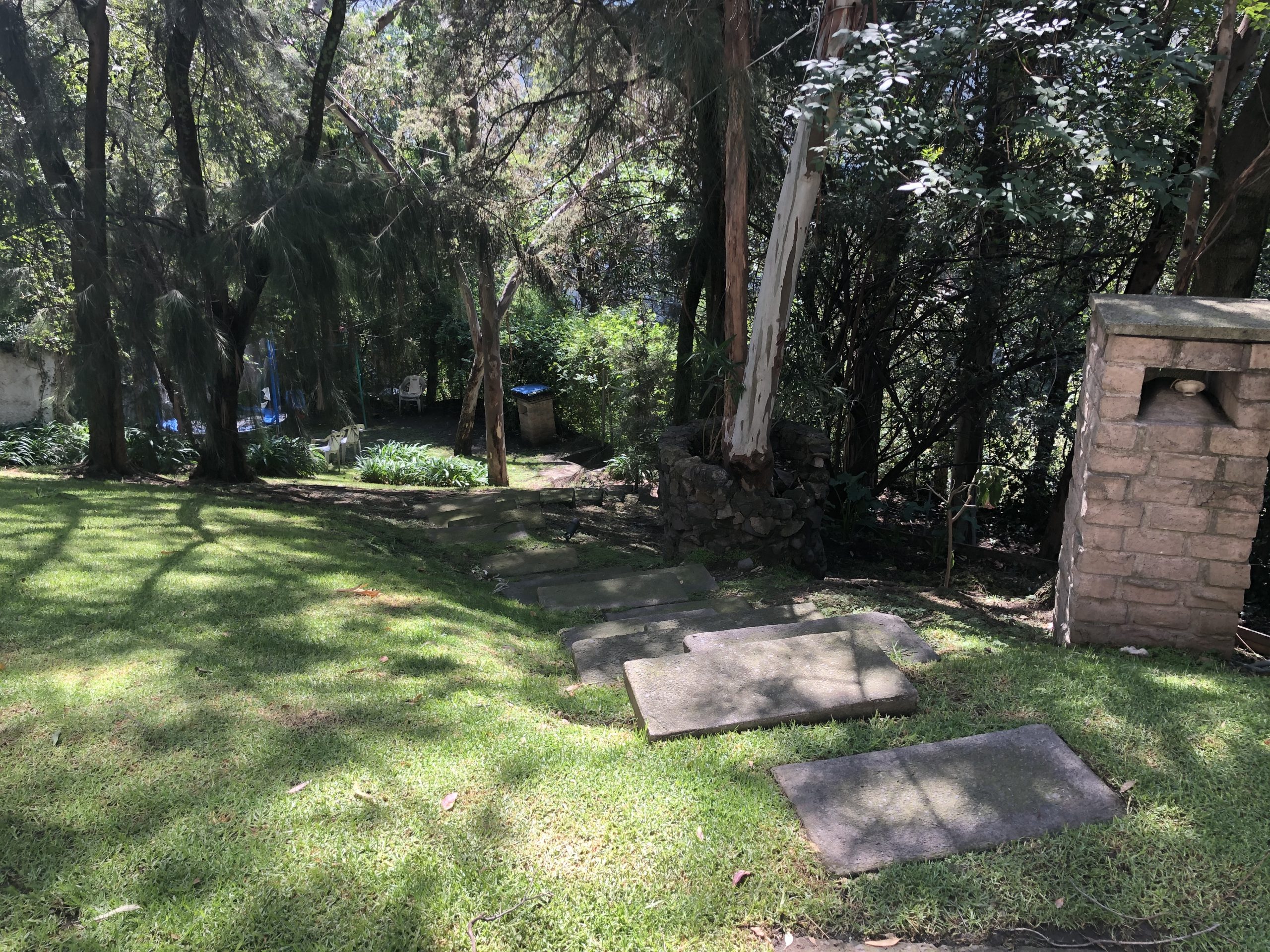 La casa está construida en 3 niveles: cuenta con una pequeña área verde al frente de la casa, dos lugares de estacionamiento, el condominio tiene árboles, jardín común de 150 m2 aprox. y estacionamiento de visitas.